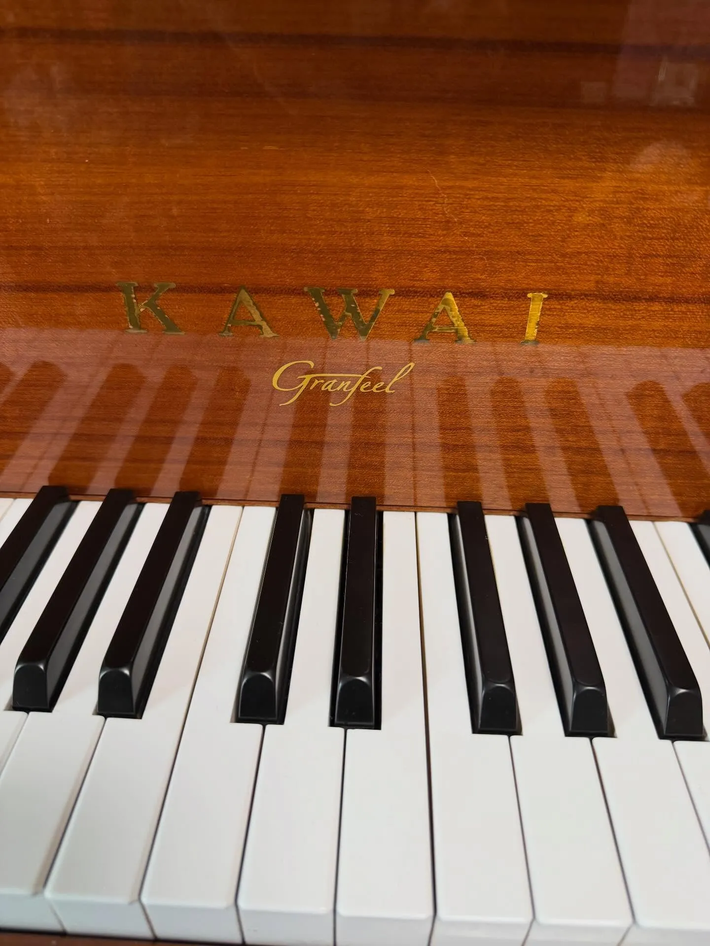 この写真から伝わるのは「大切に使われている楽器」という空気です。鍵盤の整った並び、反射する木目、丁寧に保たれた外装。そこには、日々の調律やメンテナンスが積み重ねられています。